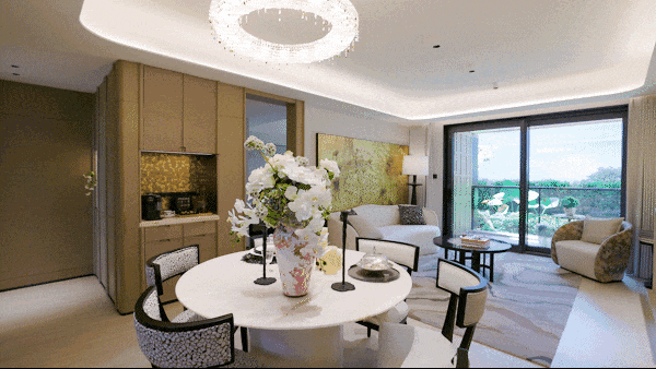 地下大堂,则以温润的白玉石材营造沉浸式归家体验.