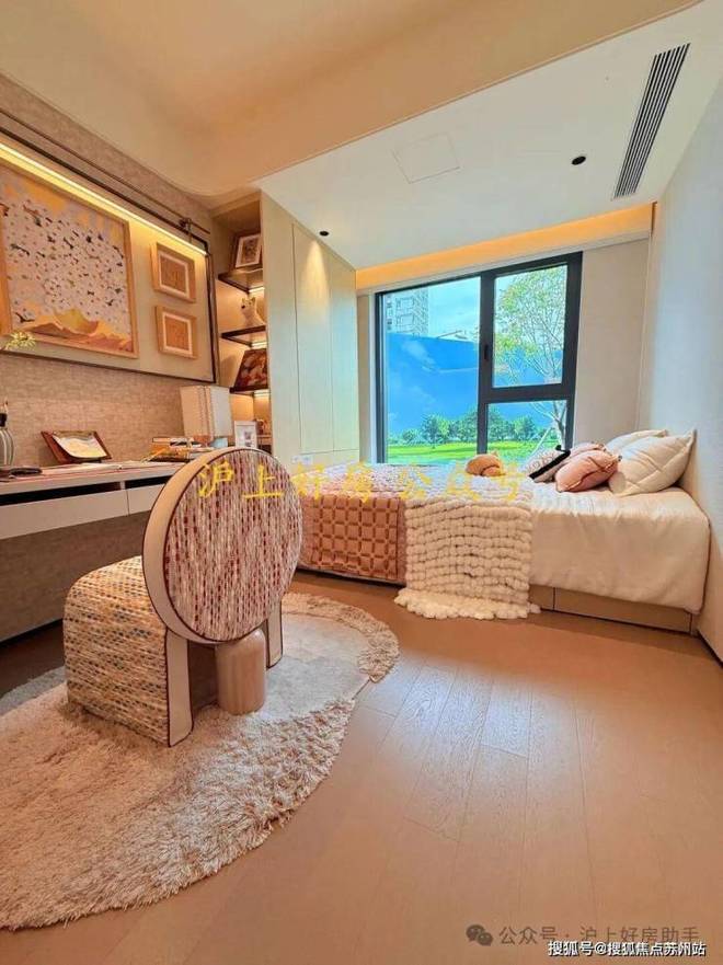 空间尺度更是“够舒展”:三开间朝南,南向面宽约9.8米,阳光能铺满室内;动区通过LDKB一体化设计,餐客厅、厨房与阳台连成近40㎡的超级空间——朋友来聚餐,十几个人坐得下;孩子在客厅玩玩具,家长在厨房做饭也能随时照看,不用来回跑.三个卧室都能放下1.8米床+衣柜,没有“小房间凑数”的情况.
