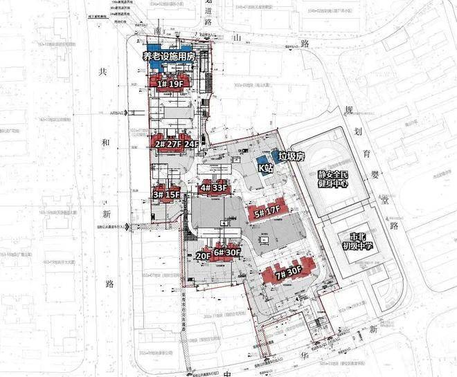 而北侧靠近南山路一侧还规划一幢最高6层的养老设施用房。在小区南北两侧的中华新路和南山路分别设有机动车出入口。