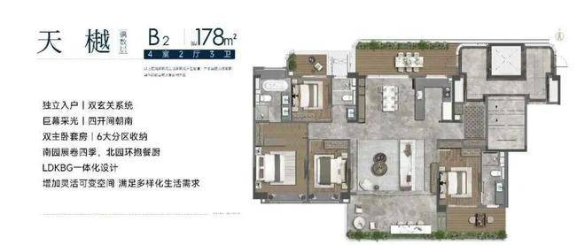 太湖天誉的洋房为四代宅,偶数层·南北双园:南向客·园一体,尽藏绿洲野奢;北向餐·园融合,尽享聚会自在。