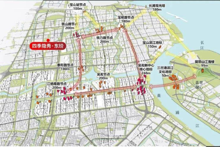 据了解,四季隐秀·东玠东侧的铁山路站未来将作为TOD综合体开发,计划建设200米超高层地标级建筑群,未来规划非常值得期待!(信息来源:《大吴淞地区专项规划》)