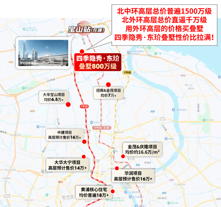 Secondly, after several rounds of land auctions, the value system in northern Shanghai has undergone earth-shaking changes. The total price of high-rise buildings in the Middle Ring Road generally starts at 15 million yuan, while the total price of high-rise buildings in the Outer Ring Road is approaching 10 million yuan.