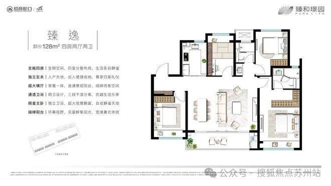 招商蛇口洞见时代改善需求大势,从精研空间格局、划定精装标准、深化场景营造,到回归人本需求,从1.0到4.0始终关注生活,于社区内规划7处游心园境与5处共享场域;于空间内展开宽厅生活、甄选品质精装,敬献128-143㎡纯粹洋房,为园区高净值人群构筑国际视野的臻我生活。