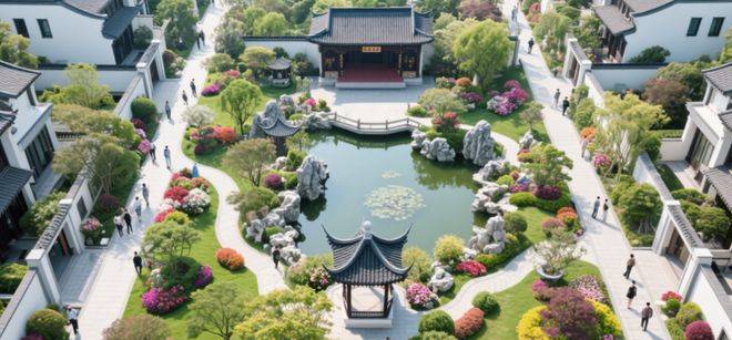 - **新中式院落**:以“宅门、院落、坊巷”为造院体系,融合北派皇家园林与苏式园林精髓;