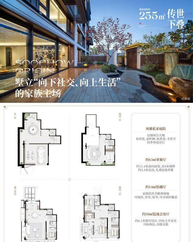 设计风格:以宋代美学为灵感,融合姑苏园林元素,打造“滨水双会所”墅区,包含茶室、私宴厅等高端社交空间。