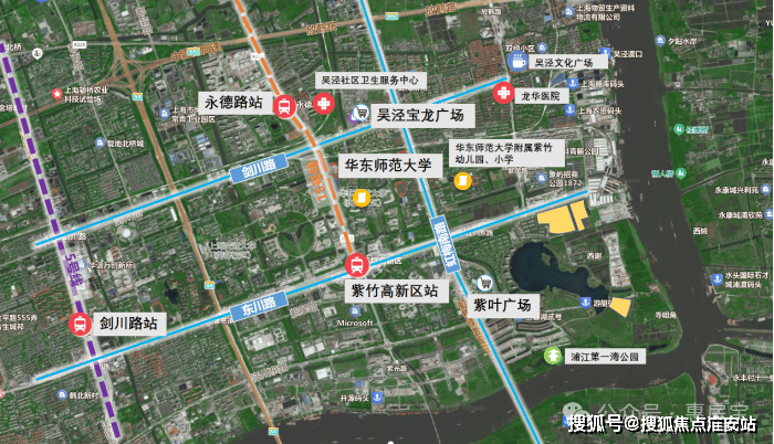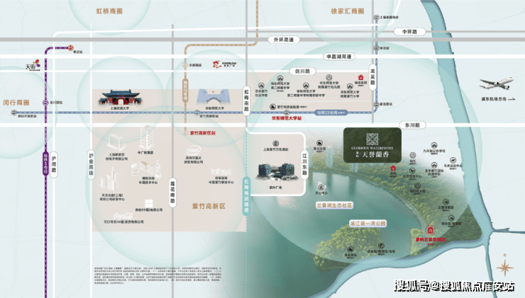 这一横一竖两条科创轴线,几乎把上海最重要的产业区、交通枢纽、城央商圈都连了进去,兰香湖周边俨然形成了一个中央交汇节点。