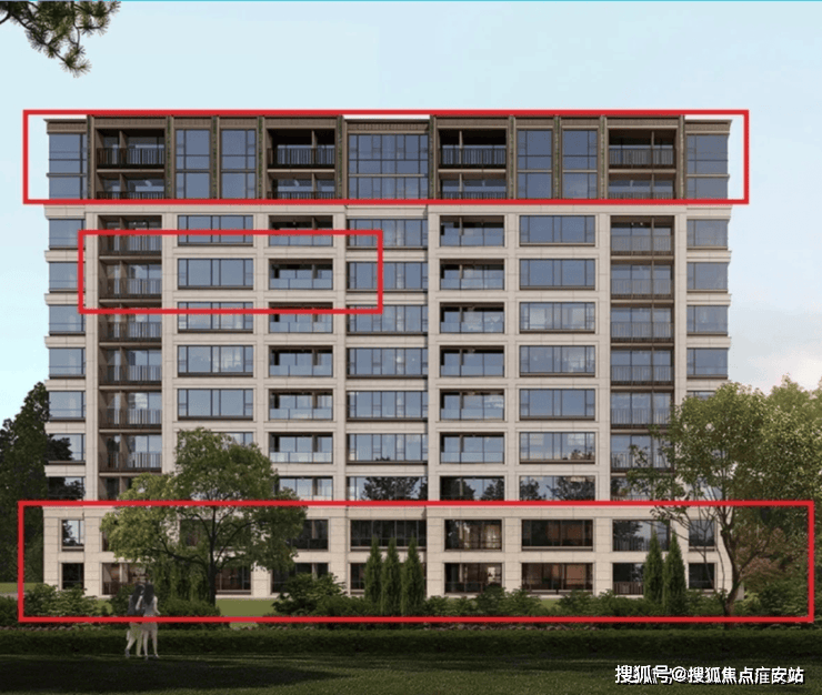 根据项目小高层的效果图来看,有几个发现,小高层1-2层的边套户型无转角飘窗,二是边套户型的阳合处看起来是金属栏杆,而中间套户型则是玻三是10F、11F所有户型的阳合均为金属杆!