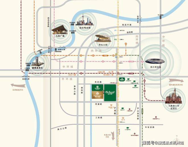 绿宝园位处康桥别墅区核心位置,距中环线仅约3.5 公里,紧邻S20, 紧邻地铁18号线康桥站。驾车可快速直达前滩、陆家嘴、张江,与迪士尼、外高桥、临港自贸区等浦东主要CBD。