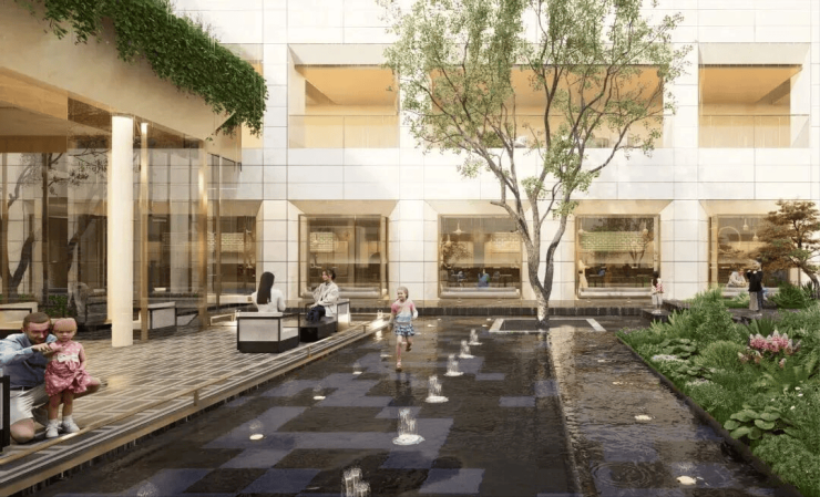 下沉式庭院:约2200㎡立体景观聚场,庭院与地面绿意交叠;既是社交沙龙的艺术剧场,亦是独坐观云的沉思之境