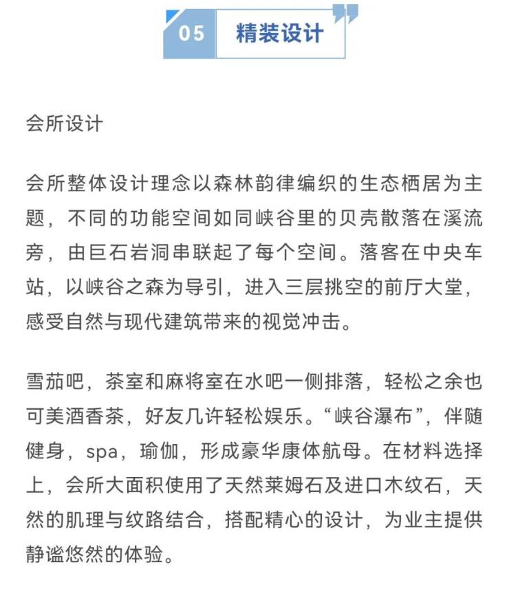 项目地面抬升约3.6米,全域架空约5米,泛会所设计了不同的主题空间,呼吸地库进行装修设计,让业主整体归家的感官更加尊贵。