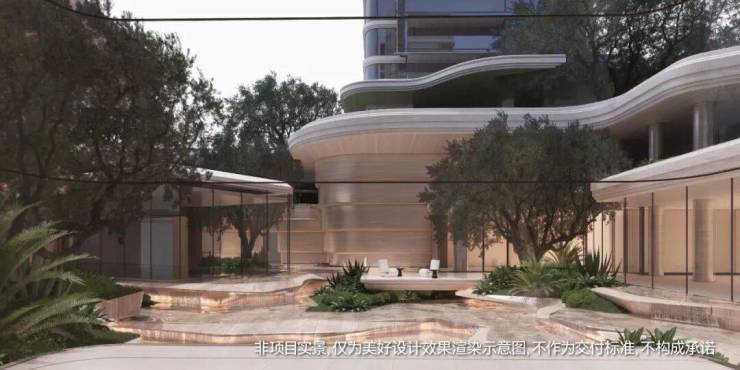 本案以现代设计语言重构自然意境,将九溪烟树的灵韵融入当代生活场景。柔和的曲线勾勒的山水溪流蜿蜒流淌在绿野之间,悬浮水景与下沉庭院形成立体景观序列,模糊建筑与自然的边界。米色石材如缎带般柔化空间,下沉庭院精选油橄榄树点缀其间,四季流转中沉淀时光质感。