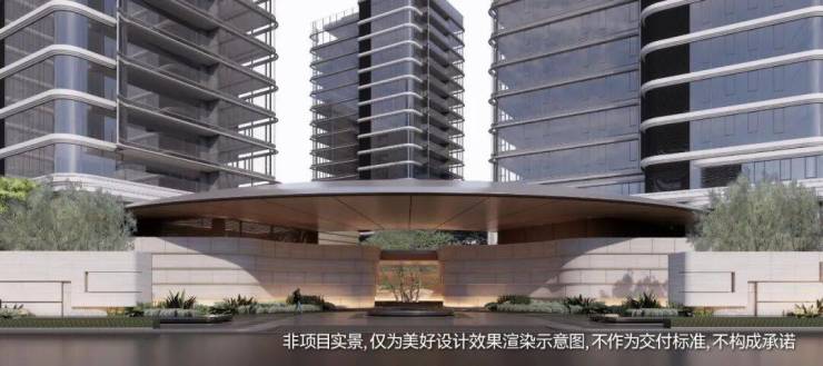 汲取新西湖十景之一九溪烟树的溪谷景观为灵感,打造专属项目业主的溪水幽谷,在“峡谷”之上,以扇形华盖造型来增加项目的尊贵气度。