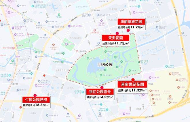 一方面,对于繁华的上海来说,生态一直是一个昂贵且臻稀的词。就拿世纪公园来说,以这座公园为中心,周边的房龄在20年以上的二手房挂牌均价起码都在约11万+/㎡。