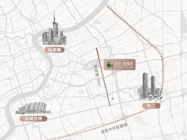 项目坐镇贯通浦东南北的繁华中轴 —— 芳甸路南延(规划中),未来将与世纪公园、联洋国际社区等理想居住地相系,快速路东西贯通,畅达多处要地,罗山高架路南北串联,高效接驳张江等产业园区,让工作、生活、休闲的切换,如行云流水般从容。