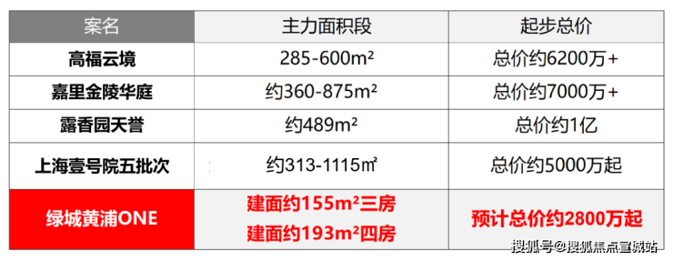 当前黄浦豪宅新房供应面积普遍超过300m²,总价5000万到1亿以上,绿城黄浦ONE是当前区域内3000万级总价段的独苗,是黄浦核心地段最后的上车机会!