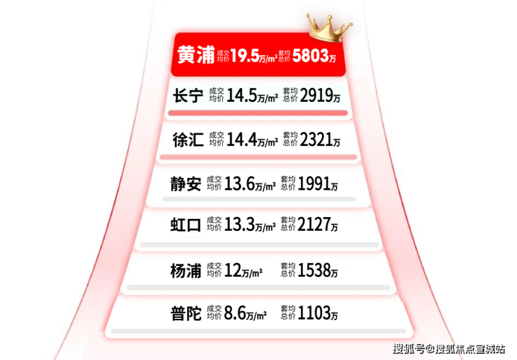 而相比这些区域,地段更加核心、圈层更加统一、资源更高能级的黄浦区中部,则将是20万/㎡+的市场