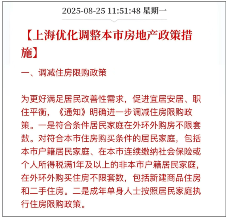 而且值得一提的是,就在8月25日上海六部门联合发布购房新政:其中包括外环外不限购、成年单身视为家庭、公积金贷款额度上浮且可提可贷、房贷利率不再区分首套二套等一系列重磅政策。