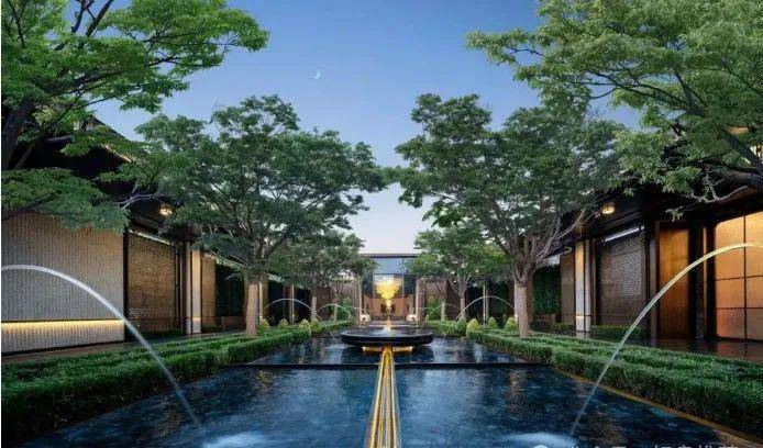 景观设计上,将东方园林造景的意境与意大利海派风格相融,中轴对称,以两轴两园三进礼序,打造高奢酒店式艺术生活园境。