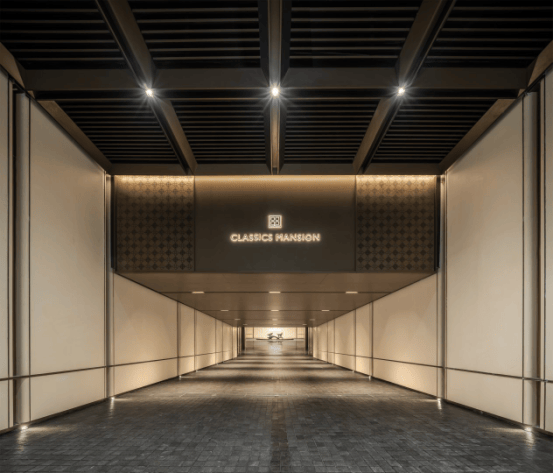 酒店入户同样是对标半岛酒店,车马院落客区的檐口、标识、星空顶等,增强入户的仪式感和奢华感。落客区的接待门采用海鸥丽晶酒店同款,尽显酒店式归家体验。
