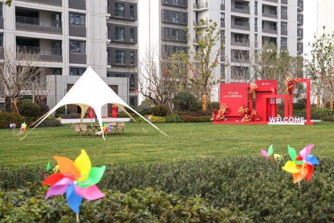 社区园林的营造,以“两轴一环一带五园”为规划骨架,匠心雕琢海派森系园林,综合绿化率约35%的背后,不仅是数据的领先,更是对居住密度的克制和对自然空间的尊重。超大的阳光草坪如一块翡翠镶嵌于社区中央、全冠移植的名贵乔木舒展枝叶,蕴含“四水归堂”传统礼序的主入口景观层层递进,共同构建了一个有层次、有温度、可参与的社区生态。