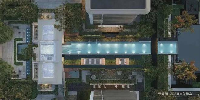 约1200方下沉庭院,叠水成瀑,区别于市面上大部分楼盘的“坑洞感”,形成上下两个平行空间的双层滨水度假系统。