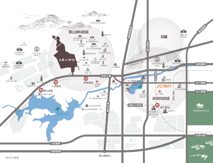 从未来科技城到春山明月大概20分钟路程,而且,未来科技城的中心其实不在阿里巴巴附近,而是要往西延伸。春山明月接壤科技大道,附近亦有城市轻轨,今天,临安撤市建区,青山湖科技城规划与未来科技城是一体的,“杭州硅谷墅区”的角色已然成熟。