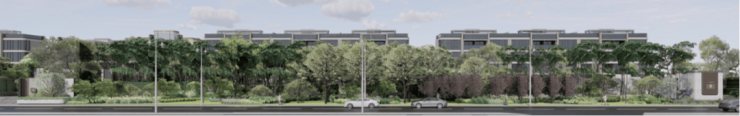 「萃屿原墅」项目借势市政绿地改造,创新性地提出“自定义红线”理念,辐射打造约40米进深浓荫林带,将城市绿意引入社区深处,拓展无边界体验。