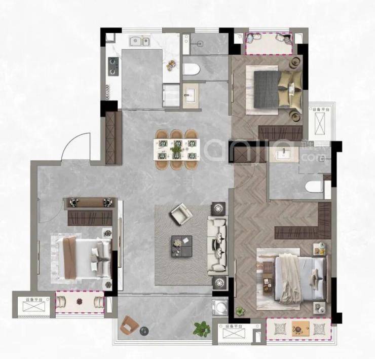叠墅四房三卫,上下分区,私密性强 ❌不适合01、刚需/低预算: