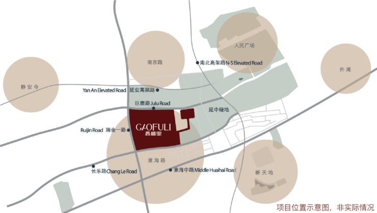 项目被南京西路与淮海路两大繁华商圈所包围,又恰好处在静安寺+南京西路+新天地+陕西南路四大CBD商圈的中芯,是上海公认的“上只角”位置。