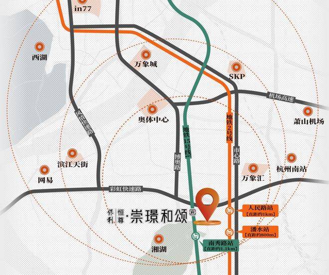 项目周边约3KM范围内,TOD开元广场(预计2023年底开业)、绿都南江商业中心、汇德隆、旺角城新天地、银隆百货,约5KM范围内萧山万象汇、宝龙广场、恒隆广场、银泰百货、人民广场等商圈环伺,咫尺繁华在侧。