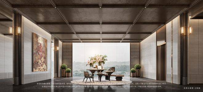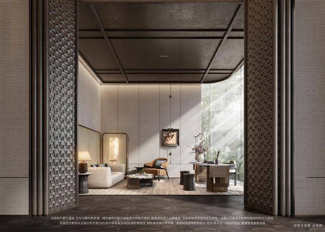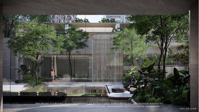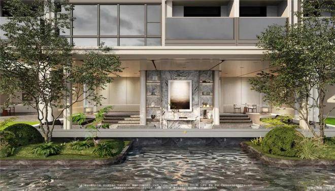 双轴线的设计,充分拓宽了视野面与观赏点位,环形回廊、精神游廊与下沉庭院通过立体景观平台相融,又创造出隔岸听泉的诗意场景。在会所、在架空层泛会所、在归家路上,每个重要生活触点,业主都能拥享独特景观和欣赏视野。
