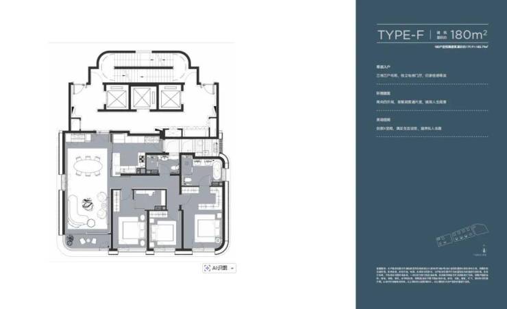 建面约180㎡户型,全南布局搭配“取景框”设计,将陆家嘴天际盛景自然融入日常起居。