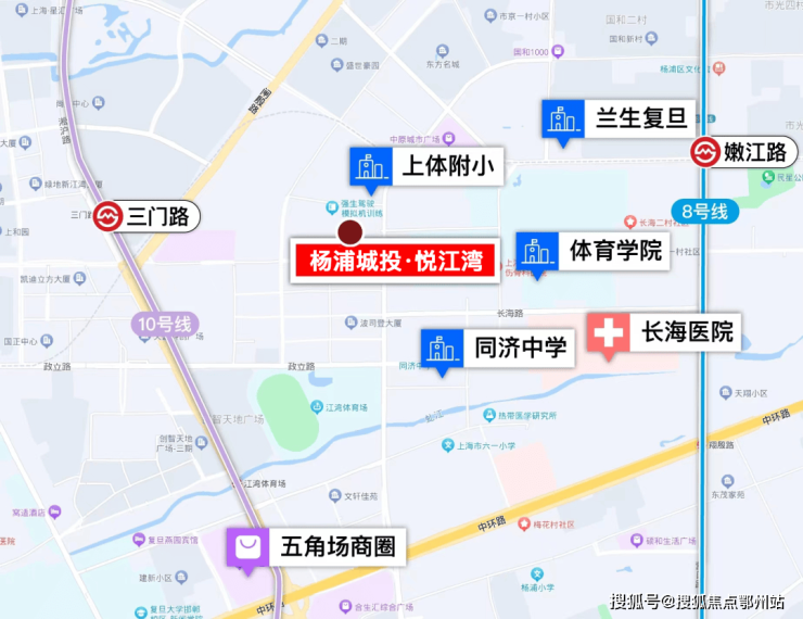 项目2公里半径覆盖有丰富的业态,配套包括 国华广场、中原城市广场、江湾里meet678 等商业, 长海医院、东方肝胆外科医院、肺科医院 等三甲医院。
