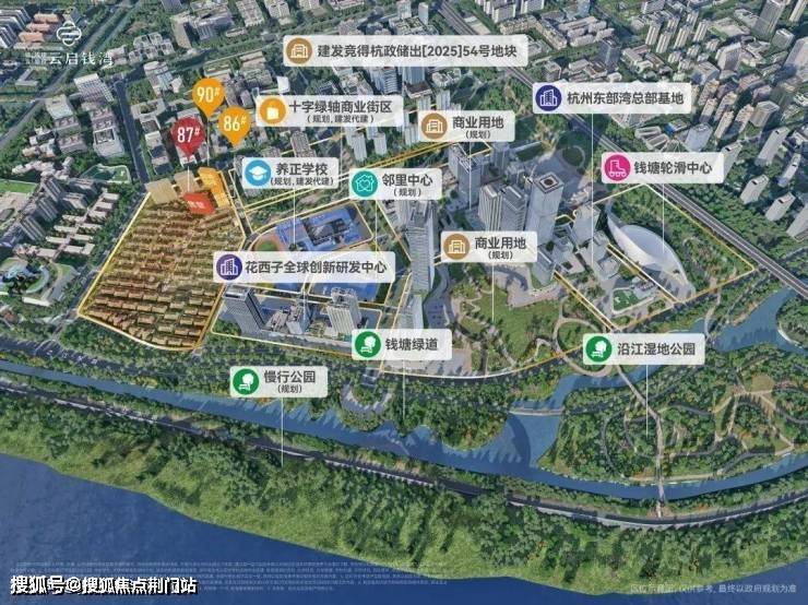 此外,板块内的花西子总部大楼已全面动工,“钱塘第一高楼”的东部湾总部大楼也早已落成。一座摩登CBD的天际线,正在快速崛起。