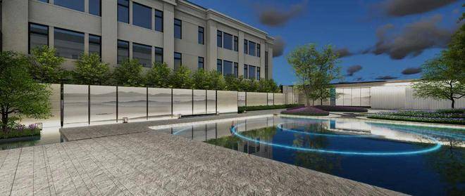 规则的绿植、层叠的水景营造入口空间体块感的同时也消除了门廊和围墙的生硬感,结合灯光、小品,为空间注入一抹灵动与温暖。