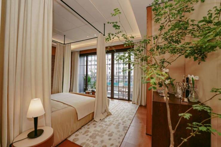 同样大面宽落地玻璃南向长辈套房,以零台阶平层动线呵护长者起居,晨光入室、推窗见园,让孝心落地于每一寸空间细节。