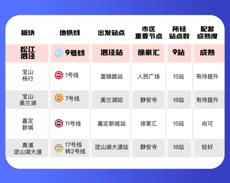 这也让泗泾有着3站七宝、6站漕河泾、9站徐家汇的通勤效率。