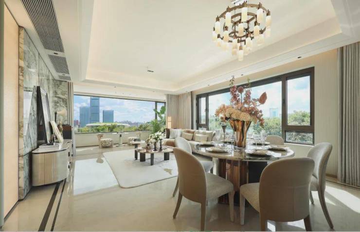【约102㎡样板间】三房两厅两卫格局,同样的布局设计巧思应用于102㎡,打造出近乎双套房的生活体验。5米面宽横厅设计,营造极致通透感,臻选奢石融入空间,优雅时尚。厨房科学动线设计,搭配国际品牌五金和厨电,悦享精致烹饪时刻。星级主卧,独立卫浴,将空间最大程度延伸,打造舒居体验。