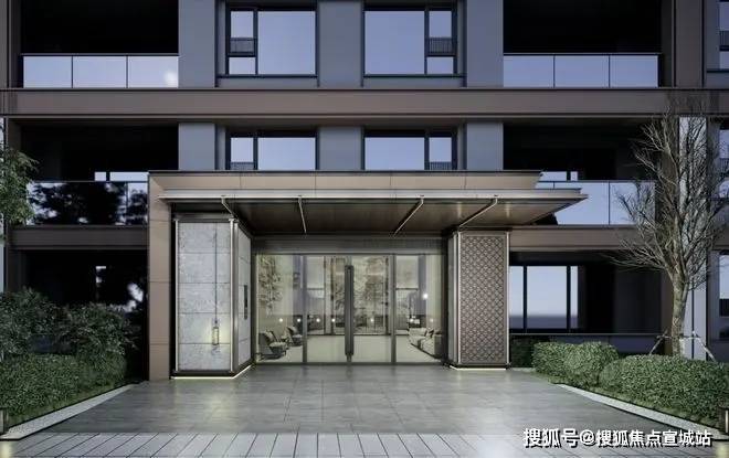 而在建筑主体上采用了 传统中式建筑的三段式手法,运用香槟金色和米白色线条对建筑立面比例进行划分,以非对称的设计赋予建筑灵动与美感,纵横线条交织,次序分明;基座处的入户单元门头,也是独具精工细节,给人以尊贵的入户体验。