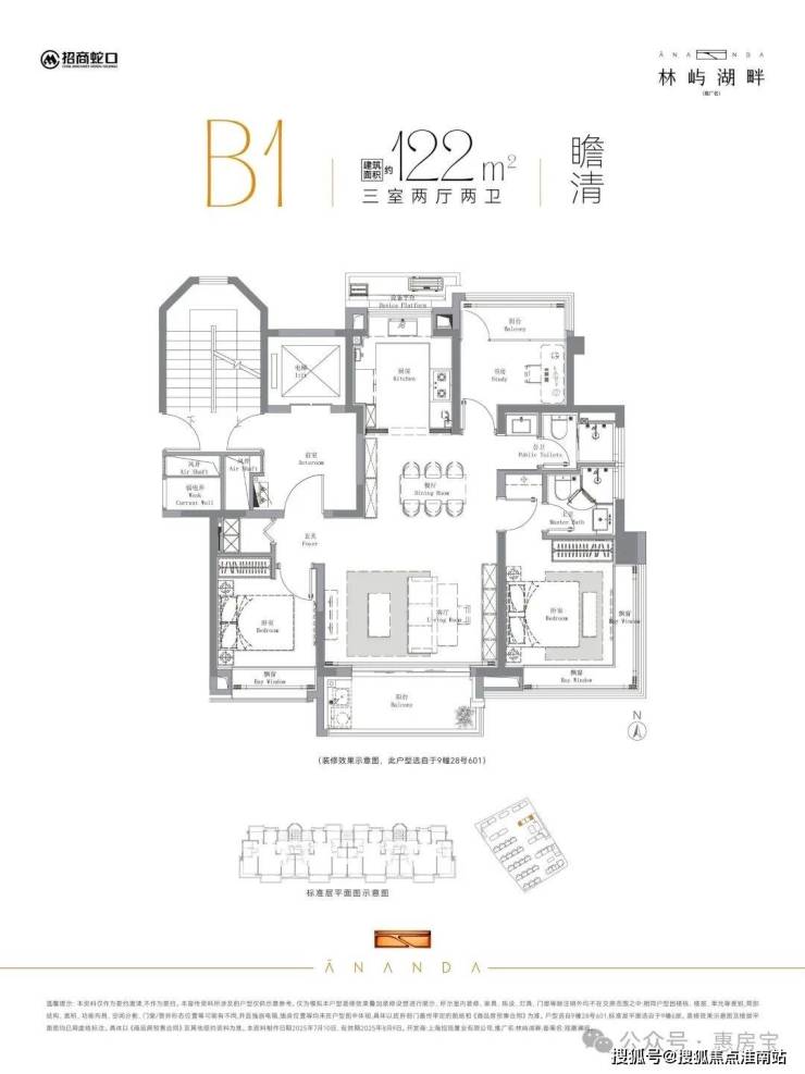 建面约122㎡3房2厅2卫双阳台: