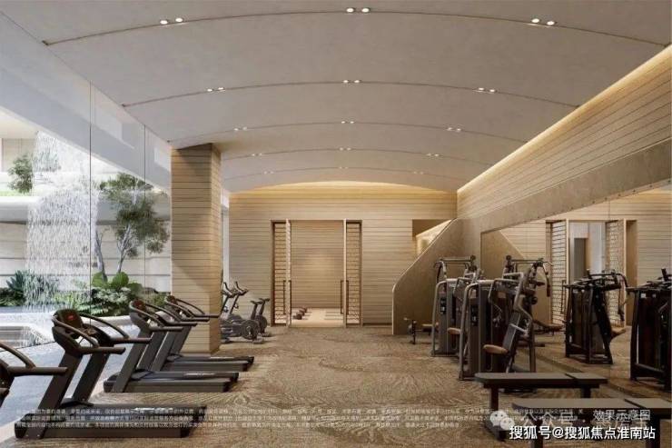 约1200㎡会所,以 私宴厅、瑜伽室、棋牌室、壁球室和健身房空间为主,功能丰富,匹配当代精英的生活与精神需求。立体下沉会所由 艺术旋转楼梯进入,整块 白木纹石材切割+宝格丽粉镶边设计的旋转楼梯,营造社区高雅氛围,步步生花。 区域首创国标壁球馆、飞瀑园景健身房、嵌入式景观书吧等,整体统一化仿树榴木纹贴面,还原内外统一的高级度假酒店质感。