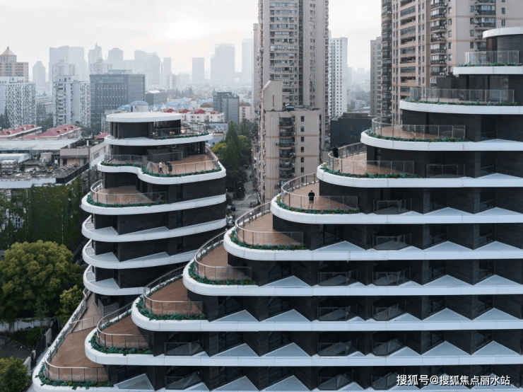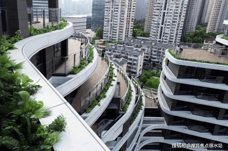 项目整体设计上与常规住宅的传统模式不同,主建筑师姜平先生提出采用自然有机的建筑轮廓,通过层层退台的设计手法,象征山川的层叠和流水的起伏,模拟自然“山水”意向,形成多维立体的城市观景露台,宛若“城市风景中的梯田”。