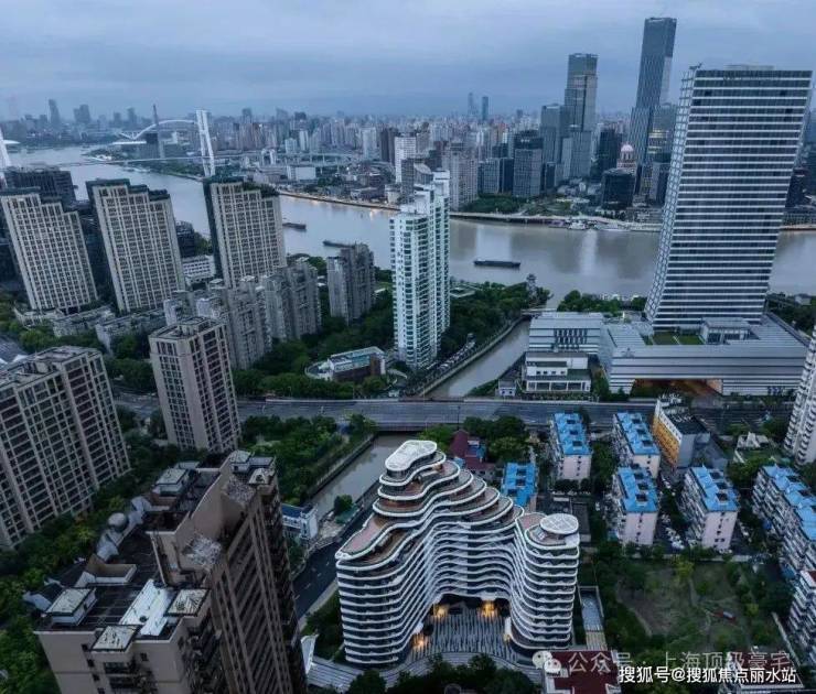 建筑层层叠高向内退进的波浪线型,形成了多维立体的生态居住空间。垂直重叠的弧线形露天观景平台巧妙地将江景与建筑相融合,部分居住者能够拥享临岸滨江风景。在保障光照充足的同时,创造出独特的建筑外廓,为陆家嘴的城市天际线添上柔美的一笔。