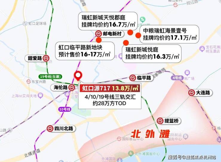 房企以盈利为目的,虹口内环内能拍到这个价位说明地段的真实价值就在这里,周边二手次新房挂牌价落位16-17万/㎡左右就是证明!