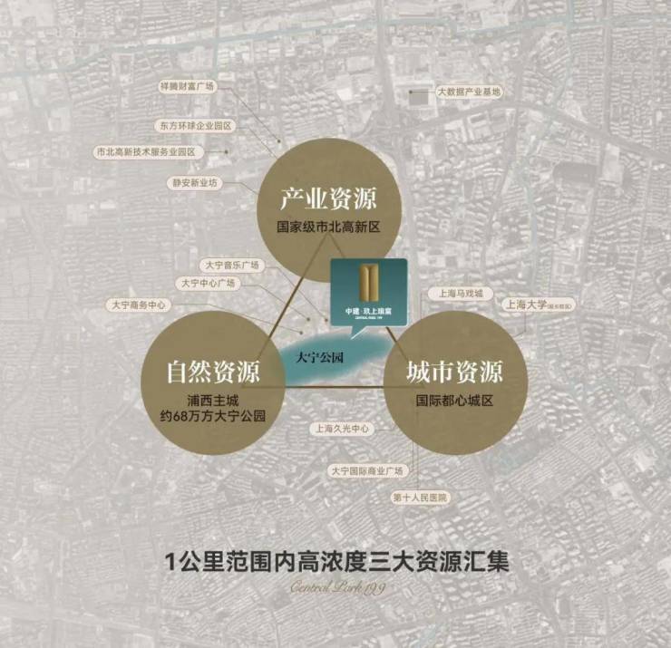 纽约曼哈顿CBD 与中央公园,筑就全球仰望的恒产奇迹;伦敦金融城 CBD与海德公园,上映永不落幕的金贵地脉;上海大宁全域中央公园式CBD,汇集产业、城市、自然三重高浓度资源,成就“黄金三角”价值坐标。中建•玖上琅宸立身“黄金三角”之心,敬献谨此正南向公园观礼台。