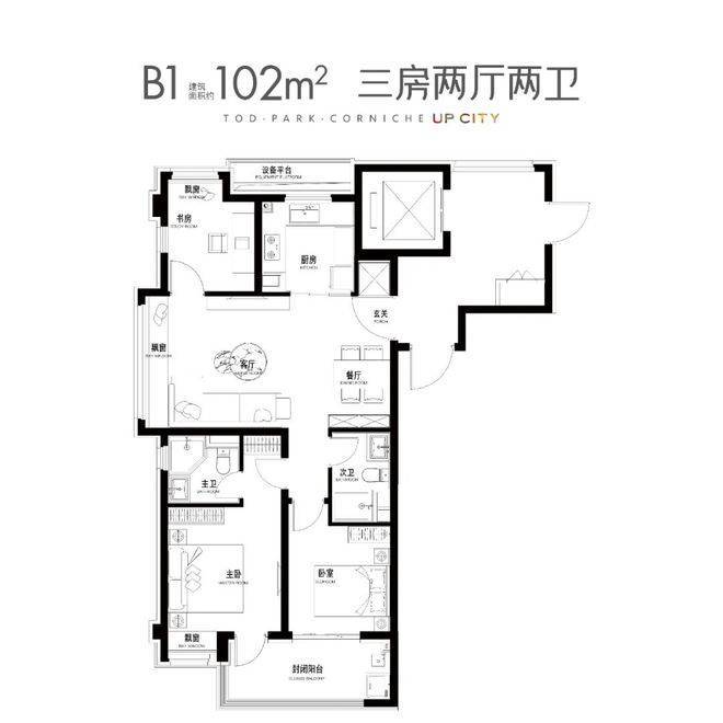 建面约102㎡3房2厅2卫▼