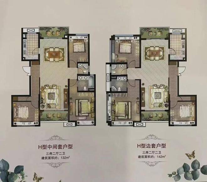 高层:中间套132㎡,边套139-142㎡