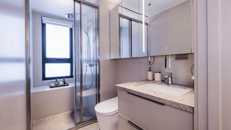 卫生间更是设计了整面镜柜收纳空间,主卫配置美妆冰箱,细节无敌~