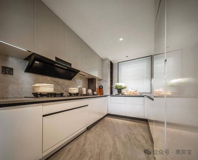 多飘窗设计进一步提升使用率,样板间利用北卧飘窗铺就舒适榻榻米;厨房也有飘窗,增加了操作台面和收纳。