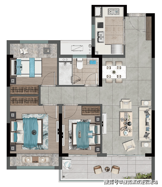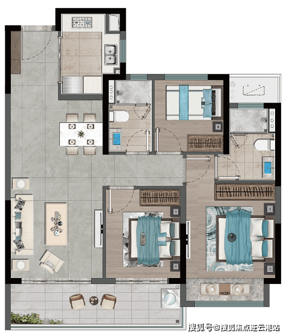 阳台不只是洗衣晾晒,更是一片风雅天地,三五好友品茶赏景,亦或独自看书沉思,茶书相伴,乃人生一大乐趣。悦年华花园建筑面积约105㎡精品三房,约6.5米南向宽景双联大阳台,美景满怀,满足全家人的畅享。